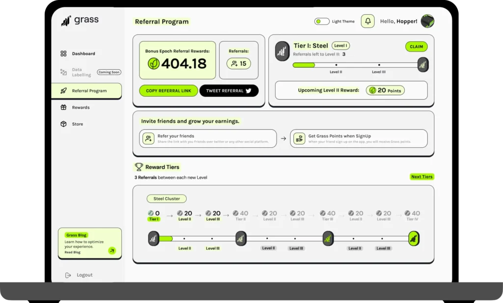 Your contributions to the Grass network are tracked through the awarding of Grass Points, which are shown on your account through the Grass Dashboard.